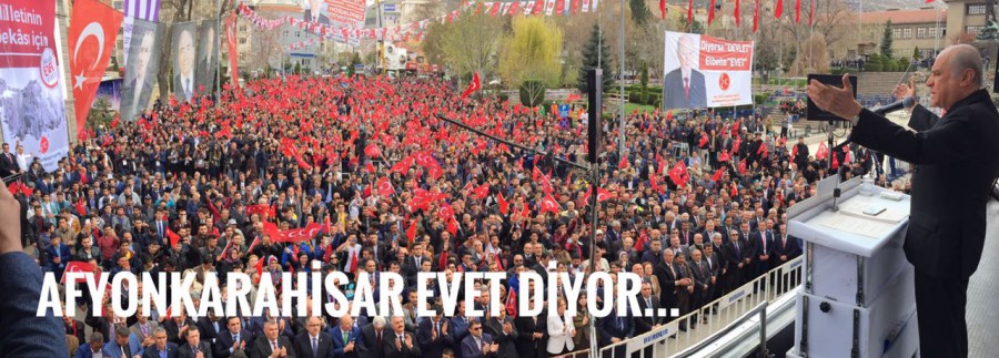 Afyonkarahisarlı kardeşlerim soruyorum sizlere; 16 Nisan’da devlet için cevabınız ne olacak? (Evet) Millet için kararınız ne olacak? (Evet) Cumhuriyet için tavrınız ne olacak? (Evet) Türkiye için duruşunuz ne olacak? (Evet) Kaynağımız millet, kudretimiz devlet; irademiz evet, yine evet, bir kez daha evet. Sözlerime son verirken, ilginizden, misafirperverliğinizden dolayı teşekkür ediyor, hepinizi sevgi ve saygılarımla selamlıyorum. Yolunuz, bahtınız, alnınız açık olsun diyorum. Türkiye için evet, istiklal için evet, istikbal için evet; Ne Mutlu Türküm diyene sözünü yaşatmak için evet. Sağ olun, var olun, Yüce Allah’a emanet olun.